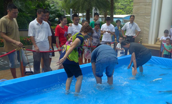 在本次活動中最激動人心的就要數(shù)捕魚達(dá)人游戲了,在幾十平方米大的水池,放的都是兩斤以上的大魚,人們紛紛排隊進(jìn)水池捕魚,只要在限定時間內(nèi)抓到就是自己的啦?。?/p>